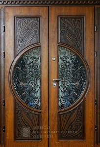 Железная дверь для загородного дома со сложной отделкой из массива №12